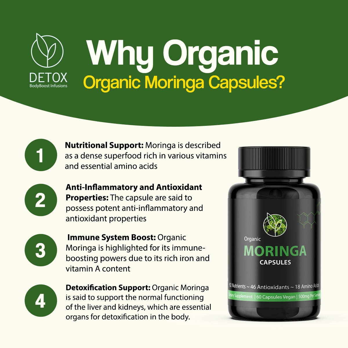 Consider Moringa, a true “superfood” powerhouse, revered for its ability to boost your immune system, support digestive harmony, and revitalize your skin from within.